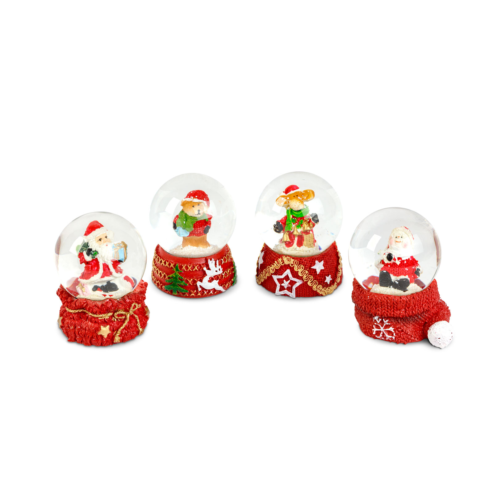 Întreaga familie, inclusiv dumneavoastră, este deja cuprinsă de febra Crăciunului? Iată cadoul perfect pentru Moș Nicolae sau Crăciun! Globuri de zăpadă tradiționale care nu se demodează niciodată. Cu 4 figurine diferite în interior Globuri de zăpadă minunate Oferă o atmosferă caldă Bază în formă de pocal Material: Plastic, rășină, sticlă, apăă Dimensiune: Ø45 x 62 mm Greutate: ~92 g
