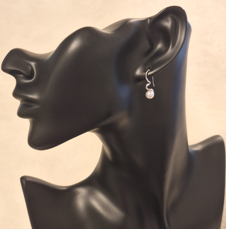 Acești cercei din argint 925 cu perlă aduc un strop de rafinament oricărei ținute. Designul lor minimalist, cu o formă grațioasă ce coboară ușor pe lobul urechii, scoate în evidență frumusețea naturală a perlei și eleganța metalului prețios.