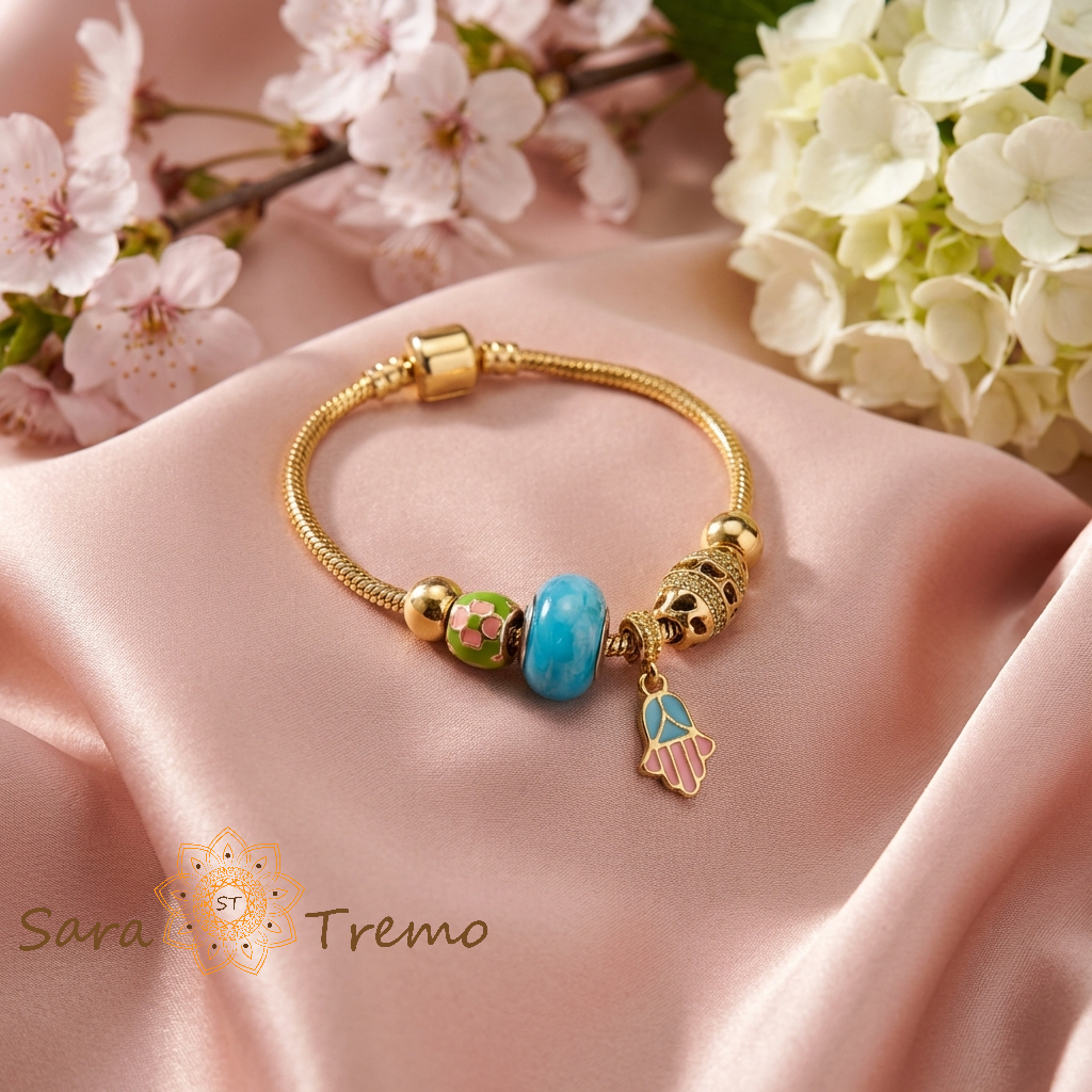 SaraTremo Bratara Protectia Divina – Bratara dama cu charms colorate placata cu aur 14K