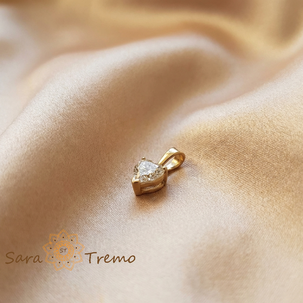 Placat cu 3 straturi de aur de 14 karate, pandantivul are o nuanta calda, identica aurului masiv, cu reflexii uniforme si rafinate. Cu o dimensiune de aproximativ 1 cm, este subtil, dar suficient de luminos pentru a atrage atentia prin finete.