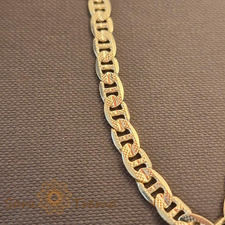 Această brățară groasă și masivă, placată cu aur de 18K, este o bijuterie impunătoare, ideală pentru cei care doresc să facă o declarație de stil. Cu un design robust, caracterizat prin plăcuțe decupate, această brățară unisex se remarcă prin prezența sa puternică și elegantă. Cu o grosime de 5 mm și o lungime de 21 cm, brățara este concepută pentru a oferi confort și durabilitate la purtare, fiind potrivită atât pentru bărbați, cât și pentru femei.