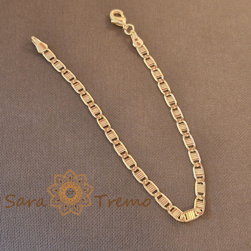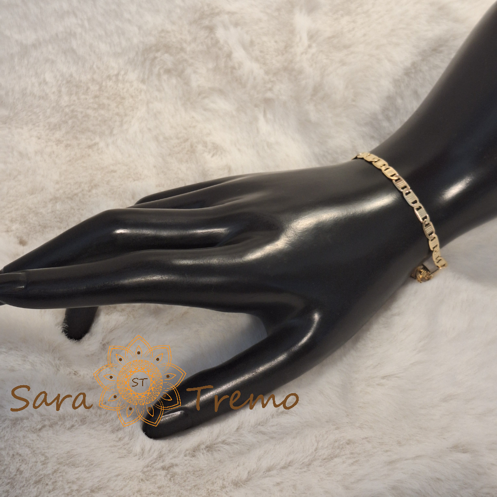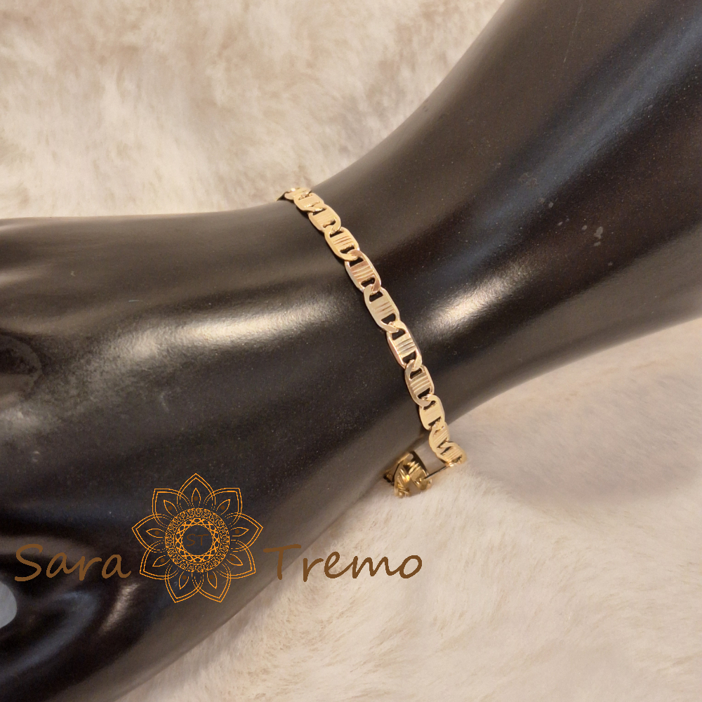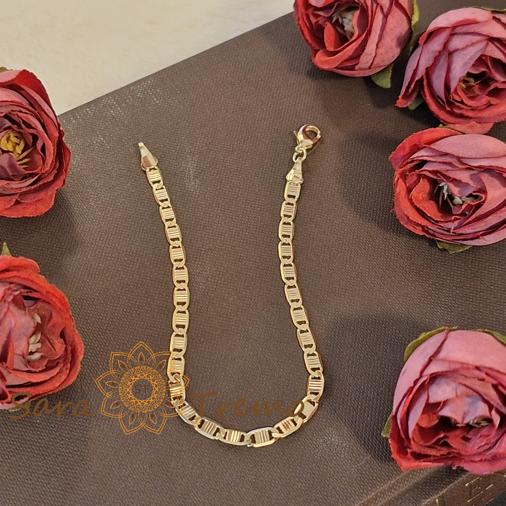 Clasică, discretă și mereu în tendințe – această brățară unisex placată cu aur, cu design format din plăcuțe elegante gravate, este o alegere perfectă pentru cei care apreciază bijuteriile rafinate, fără excese.