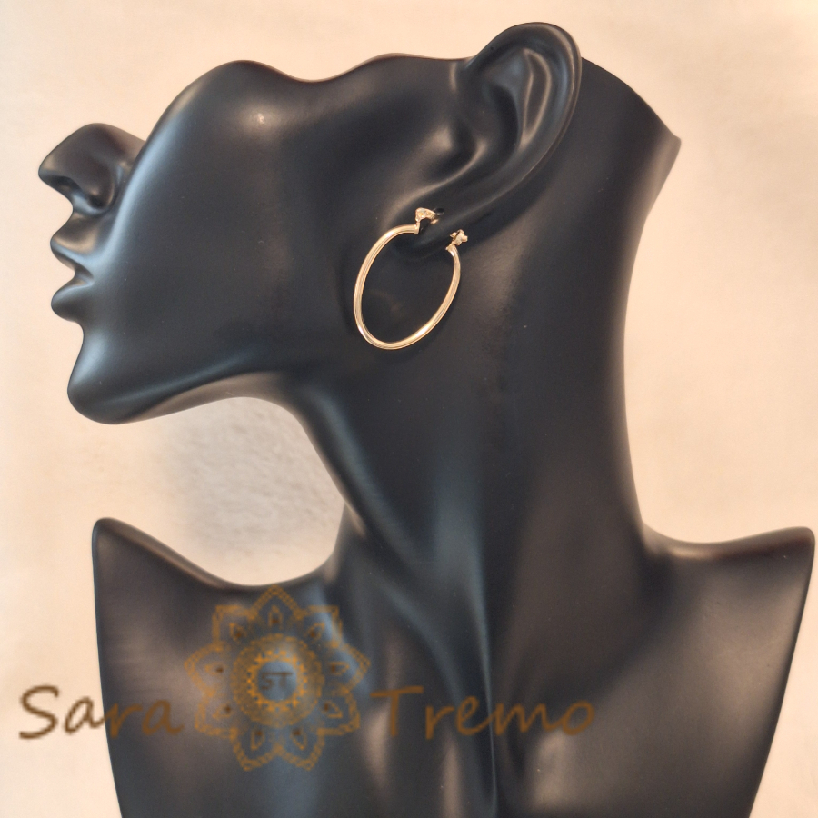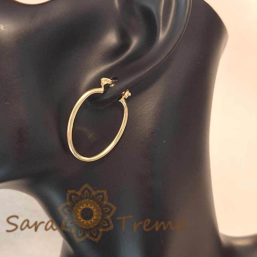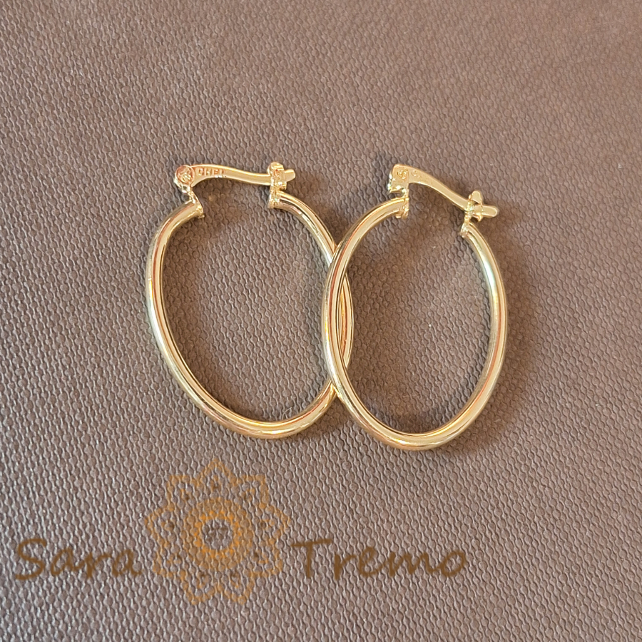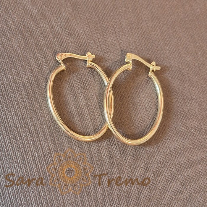 Acești cercei ovali, cu un design finuț și un diametru de 3 cm, sunt alegerea perfectă pentru femeile care caută un accesoriu discret, dar elegant. Realizați în Brazilia, acești cercei se remarcă prin calitatea superioară și atenția la detalii. Stratul gros de aur aplicat pe cercei le conferă o protecție de durată împotriva înnegririi și ruginirii, păstrându-le strălucirea pentru mult timp. Cerceii sunt marcați cu ștanță pentru aurul de 18K, garantând autenticitatea și durabilitatea acestora.