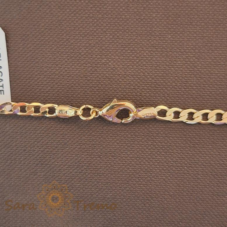 Fabricat în Brazilia, acest lanț se distinge prin calitatea superioară a placării cu aur, stratul fiind de 8 ori mai gros decât la alte bijuterii similare, ceea ce garantează o rezistență îndelungată și o culoare ce nu se schimbă în timp. Fiecare lanț este ștanțat cu marca 18K, simbol al autenticității și calității. Lanțul se livrează împreună cu un certificat de calitate și conformitate, asigurându-te că faci o alegere excelentă și de încredere.