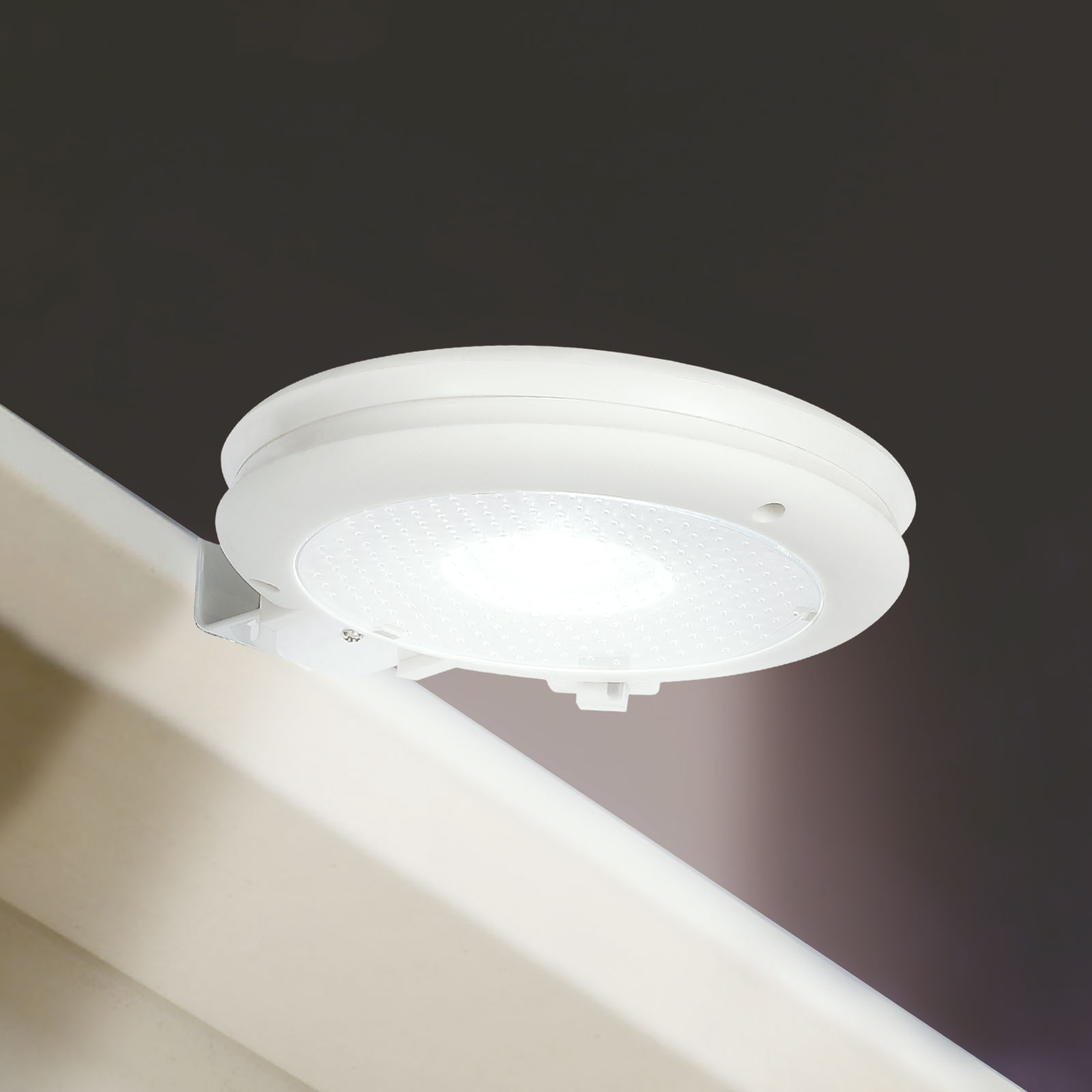 Lampă solară cu design și montare speciale, economicoasă, utilizabilă în multiple scopuri. Poate fi fixată pe perete, jgheab, gard sau balcon. Ziua, datorită luminii soarelui, bateria încorporată se încarcă, iar seara lampa se aprinde automat. Datorită funcționării solare, nu este necesară cablarea; poate fi plasată oriunde se poate încărca în timpul zilei, economisind energie, în timp ce luminează adecvat căile de acces și grădinile. Se instalează ușor, fără cabluri Carcasă rezistentă la stropi
