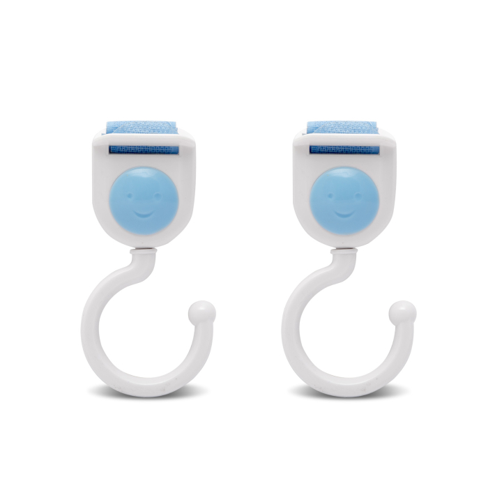 Cârlig universal, care poate fi, de asemenea, fixat pe un cărucior, transportor, cu ajutorul Velcro. Sac, jucărie, etc. Poţi să-l atârni. Două culori (albastru, roz)