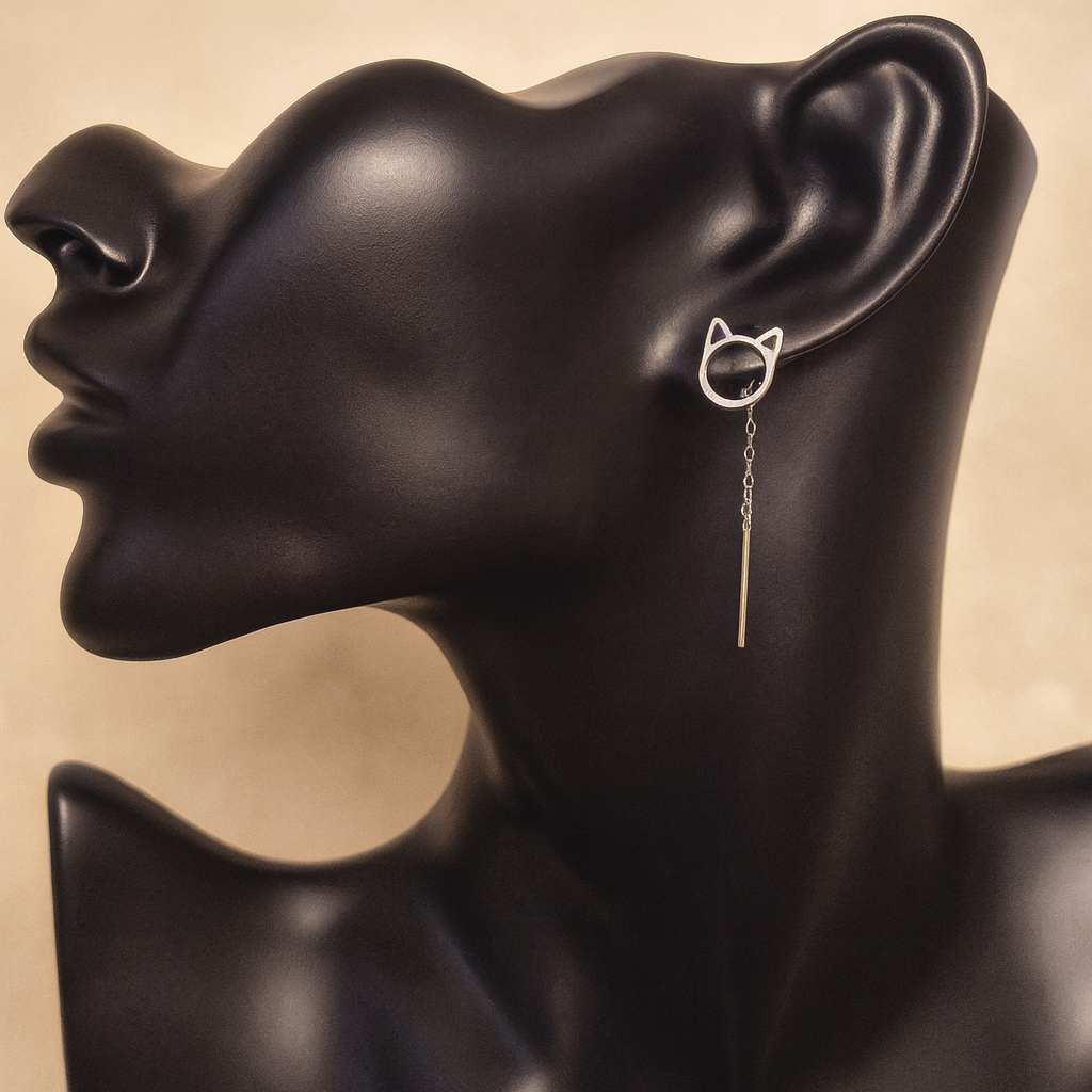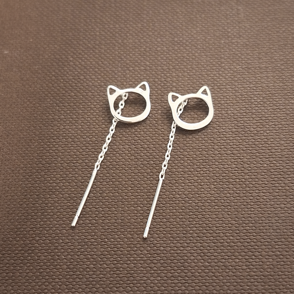 Cerceii din argint 925 Cat Chain combină finețea minimalistă cu o notă jucăușă, fiind alegerea perfectă pentru iubitoarele de accesorii discrete, dar expresive. Forma delicată de cap de pisică simbolizează eleganța și independența, în timp ce lanțul subțire adaugă un efect vizual rafinat și modern.