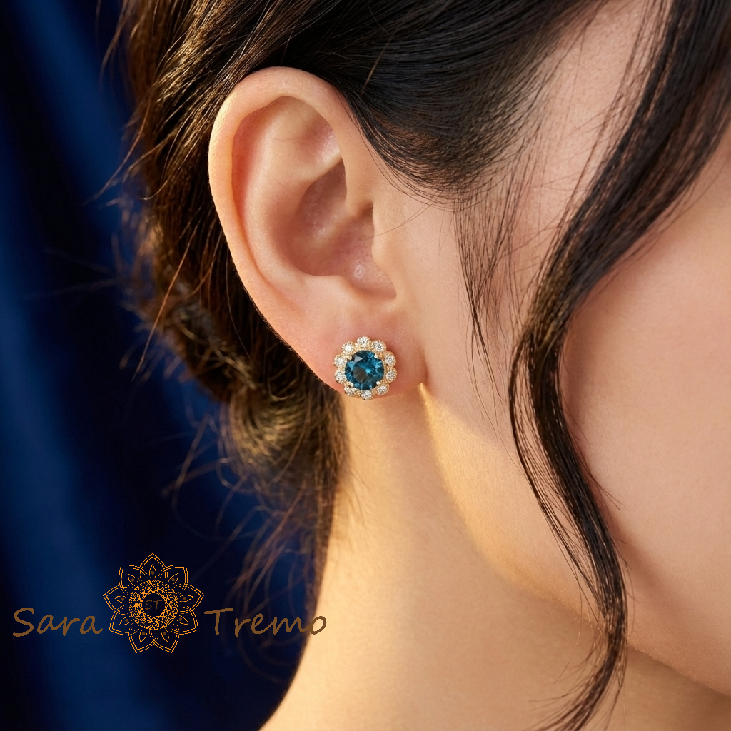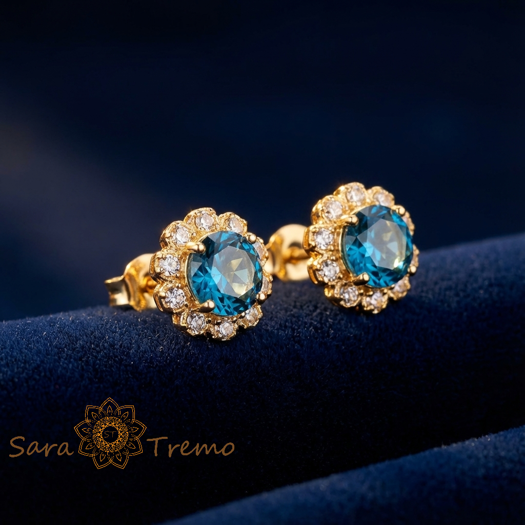 SaraTremo Cercei Albastrul Regal – Cercei Tip Tija Placati 18K Brazilia
