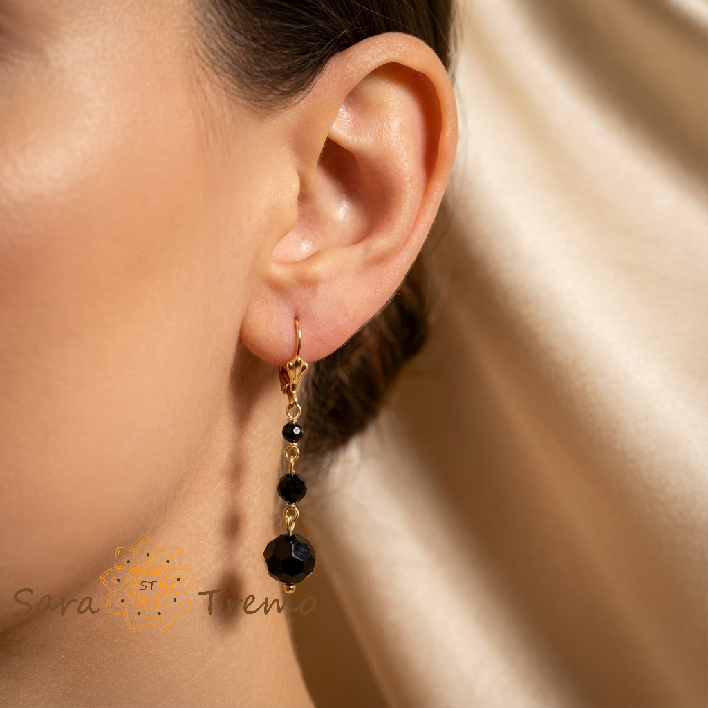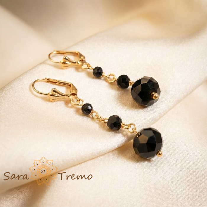 Cercei lungi cu cristale negre fatetate (look elegant, misterios)