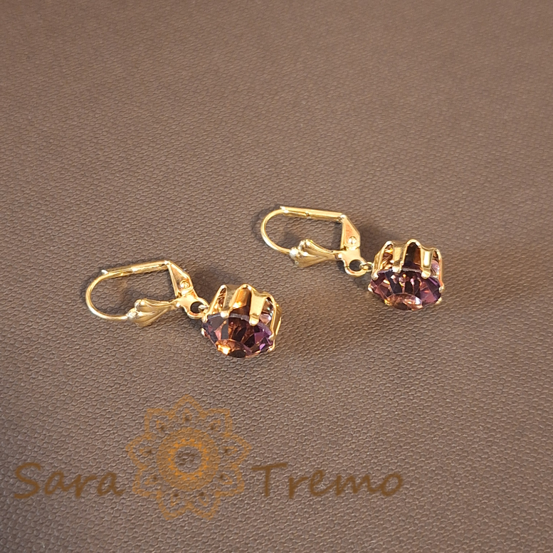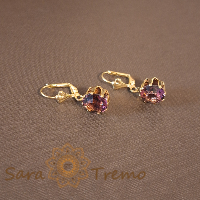 SaraTremo Cercei Placați cu Aur, Model Clasic cu Cristal Zirconia Mov Fațetat Mare