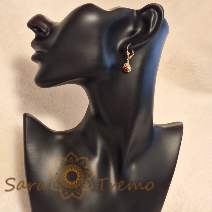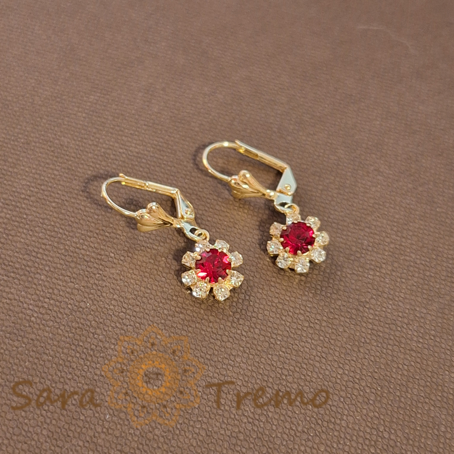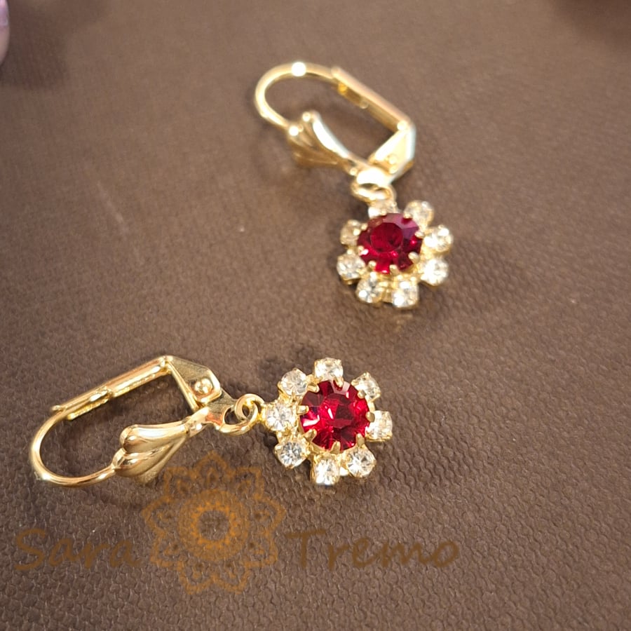 Fiecare pereche de cercei este însoțită de un certificat de calitate, oferindu-ți siguranța că alegi o bijuterie de încredere și durabilă. Designul floral cu cristale roșii și albe aduce un plus de rafinament, iar strălucirea lor captivantă va atrage toate privirile. Acești cercei sunt ideali pentru a adăuga un plus de eleganță și culoare colecției tale de bijuterii.