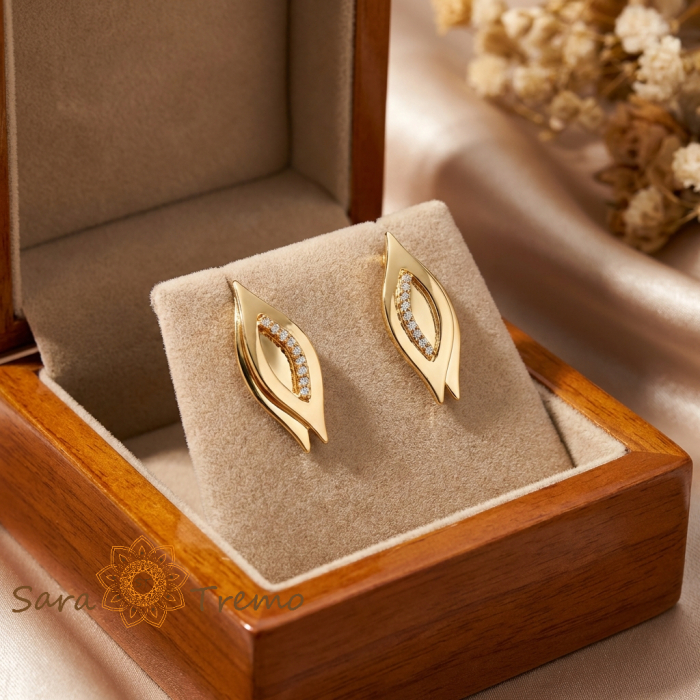 SaraTremo Cercei Privirea Aurie – Cercei cu tija placati 18K Brazilia