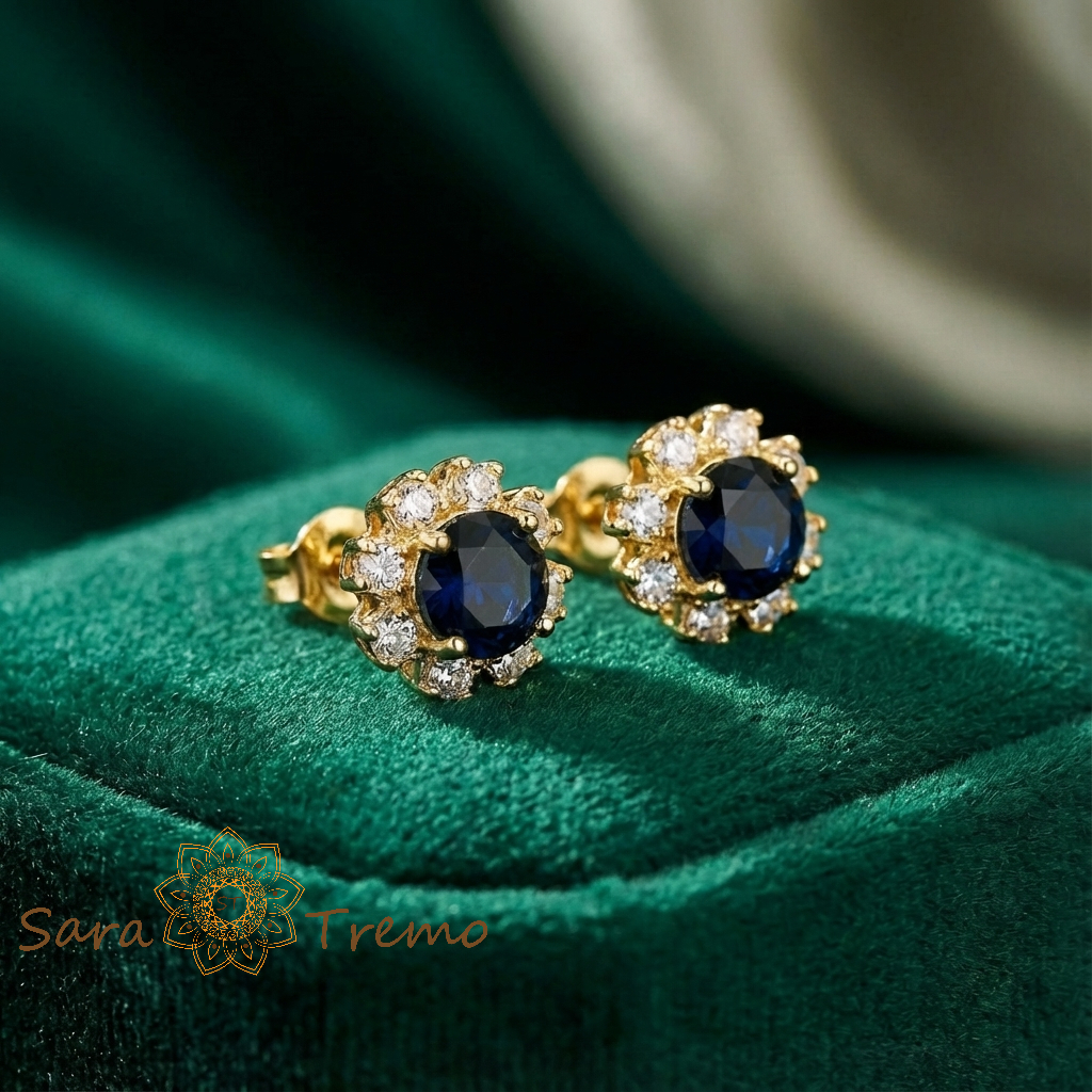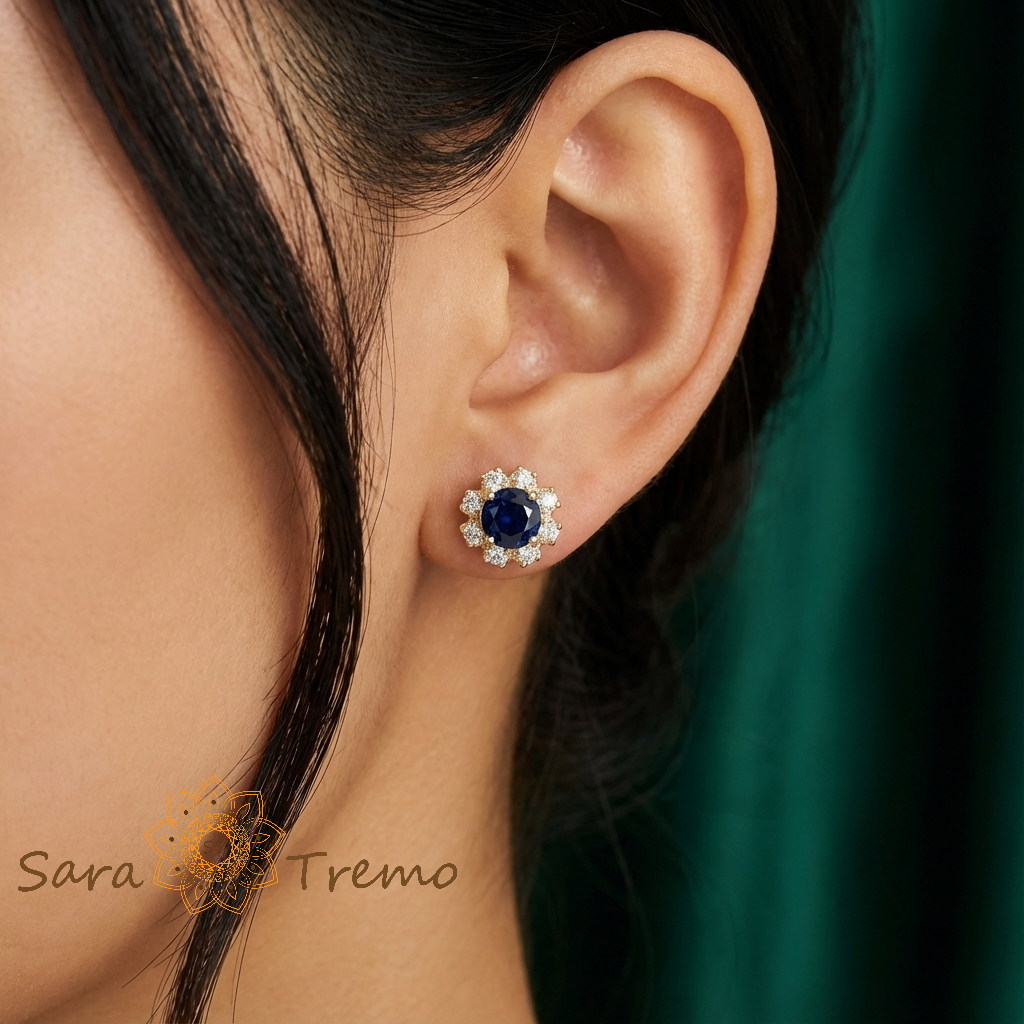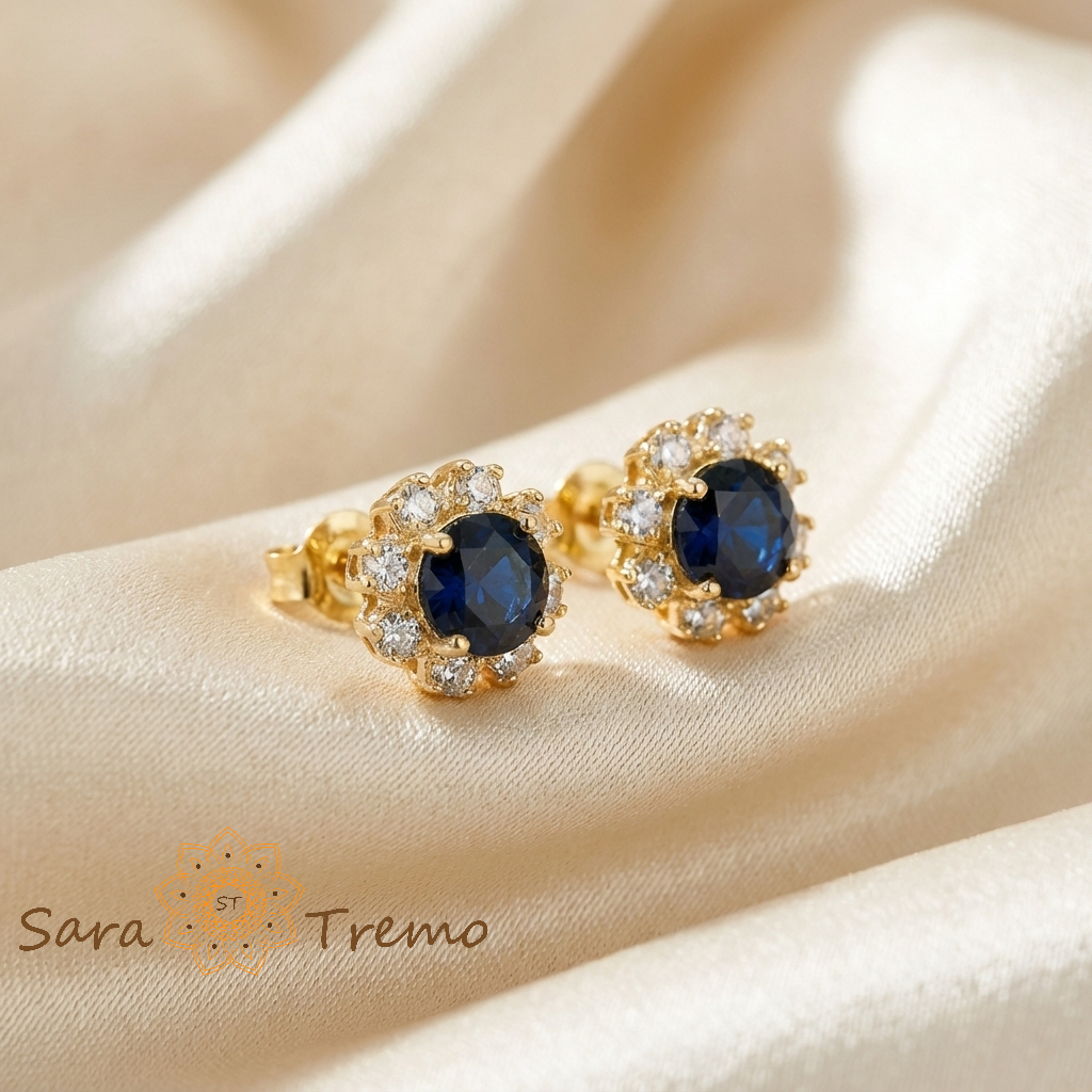 Safirul Noptii sunt cerceii care dau instant acea impresie de bijuterie “serioasa”. Albastrul profund al pietrei centrale atrage privirea, iar halo-ul de zirconia clara din jur adauga lumina si volum, exact ca la modelele clasice din aur cu pietre pretioase.