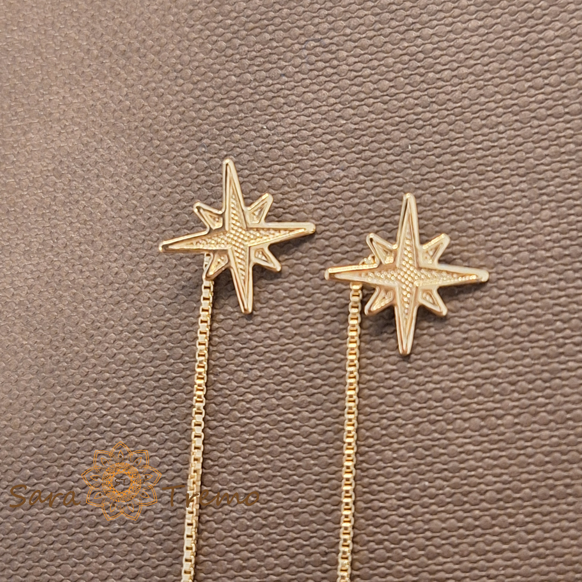 Forma inedita, cu stea stralucitoare si lant lung de 6 cm, adauga un plus de rafinament si feminitate. Inspirati din estetica bijuteriilor de lux, acesti cercei sunt comparabili vizual cu modelele din aur masiv, dar accesibili oricui isi doreste un look sofisticat.
