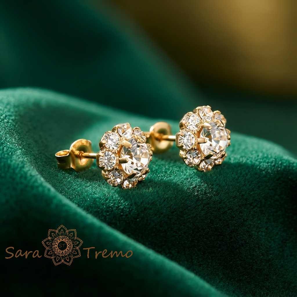 Look inspirat de cerceii halo Cartier – vizual identic ca efect cu varianta din aur masiv