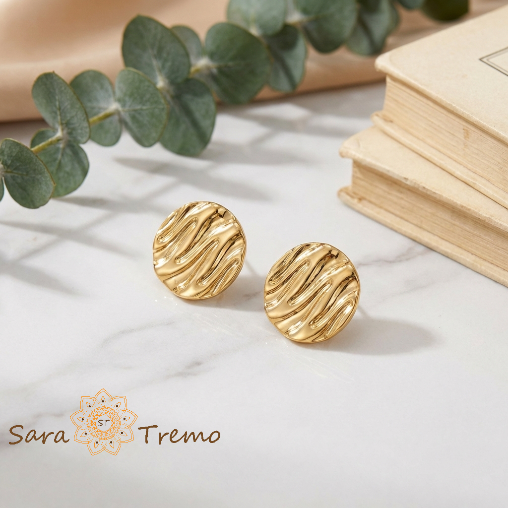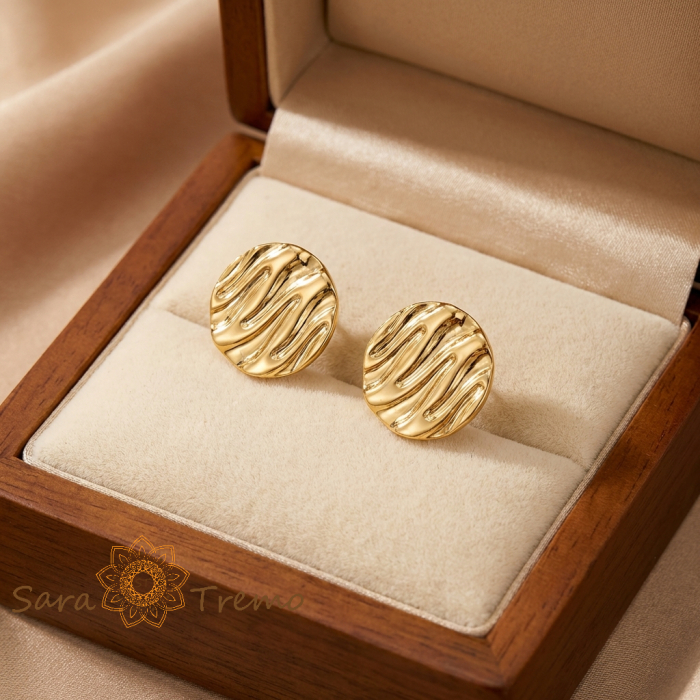 Cerceii Valuri de Aur sunt definiția eleganței care se vede din detalii. Modelul rotund, cu textură ondulată, prinde lumina într-un mod aparte: nu este un simplu disc lucios, ci o suprafață cu relief fin, care creează reflexii calde și un efect vizibil de bijuterie premium.