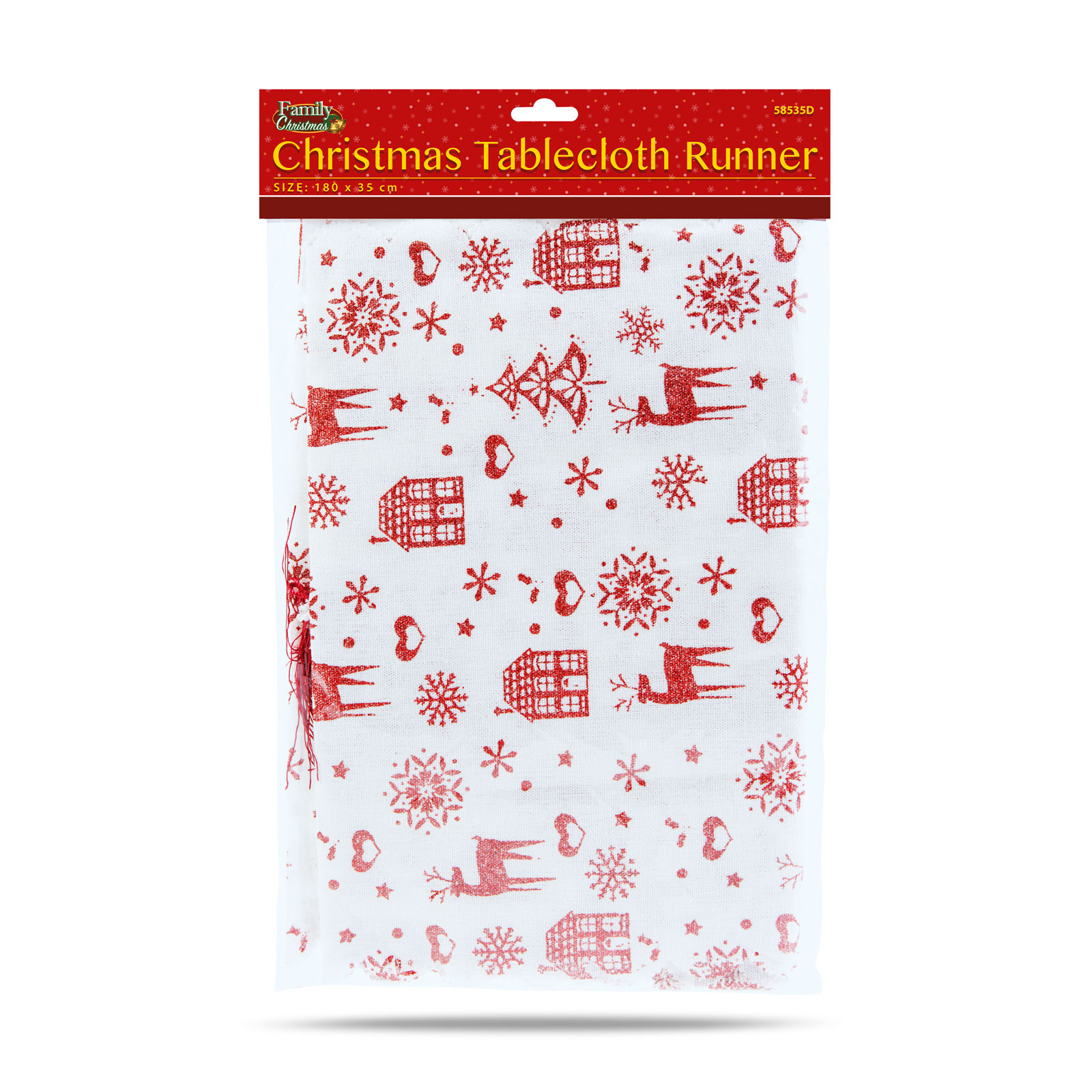 Pe măsură ce se apropie sezonul sărbătorilor, este important să-ți decorezi casa. Decorează-ți masa cu acest covoraș de masă de Crăciun pentru cina ta festivă. Bază albă/model roșu Material din poliester Dimensiune: 180 x 35 cm