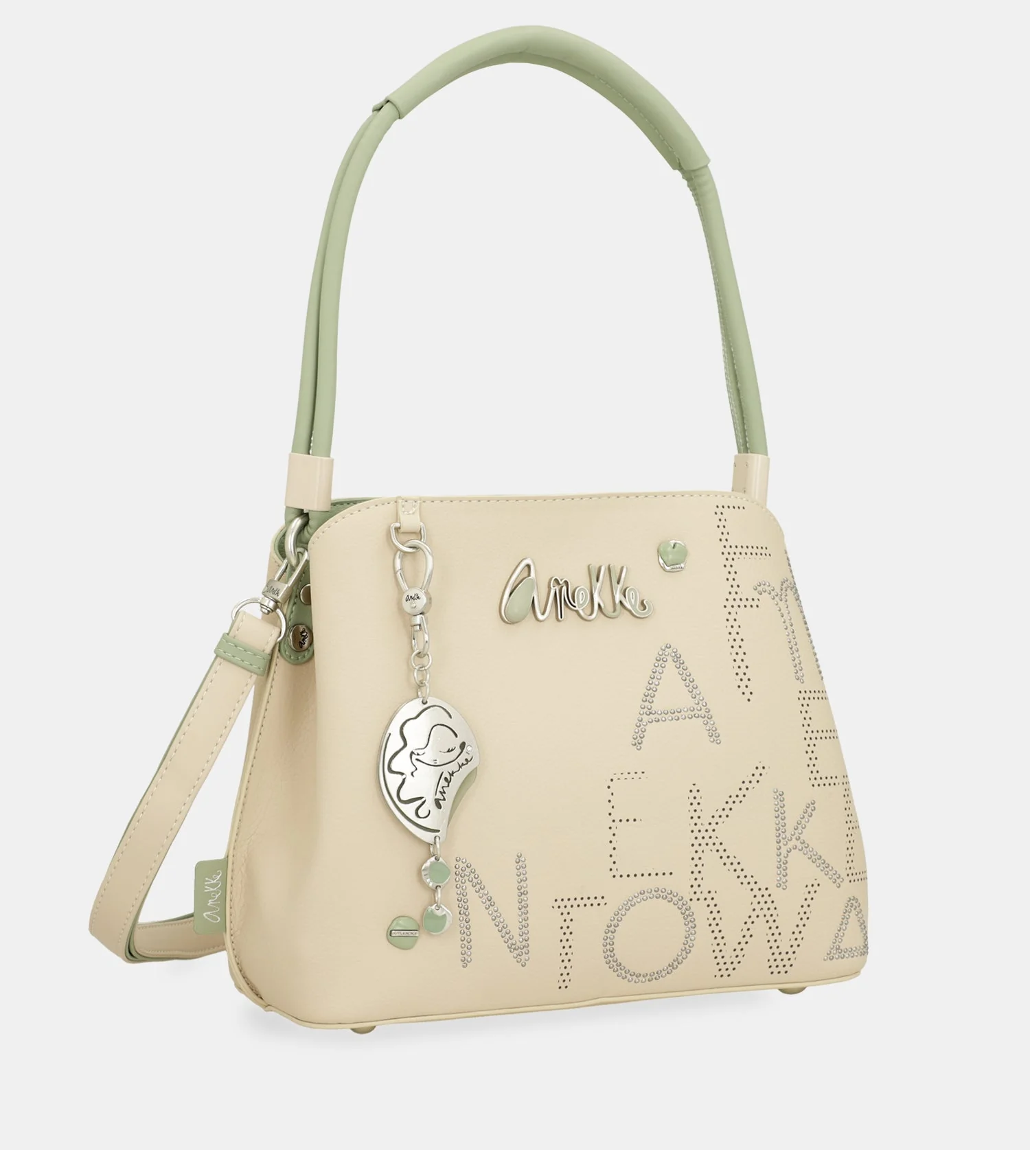 Descoperă geanta de umăr Anekke, un accesoriu sofisticat creat pentru femeile care apreciază stilul elegant și detaliile premium. Fabricată manual în Alicante, Spania, această geantă impresionează prin design artistic și nuanțele delicate de crem și verde, fiind ușor de asortat cu orice ținută.