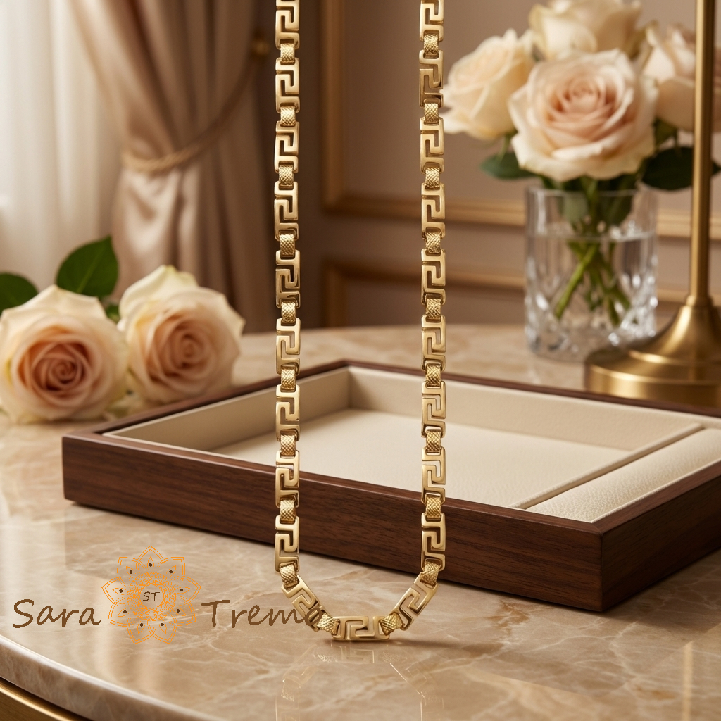 lanț elegant cu design geometric inspirat din motive grecești clasice