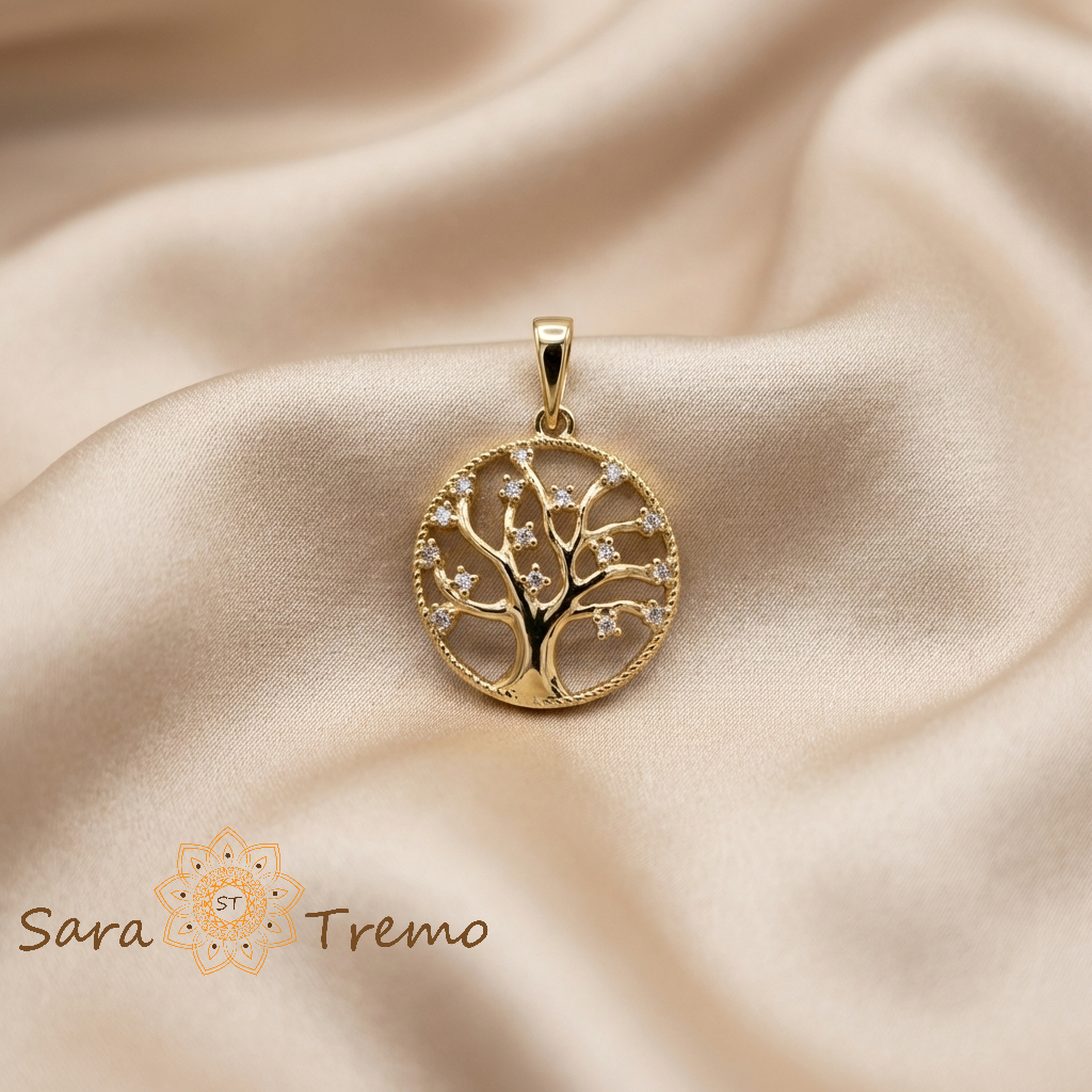 SaraTremo Pandantiv Arborele Vietii Regal – Pandantiv placat cu aur 14K cu zirconia albe
