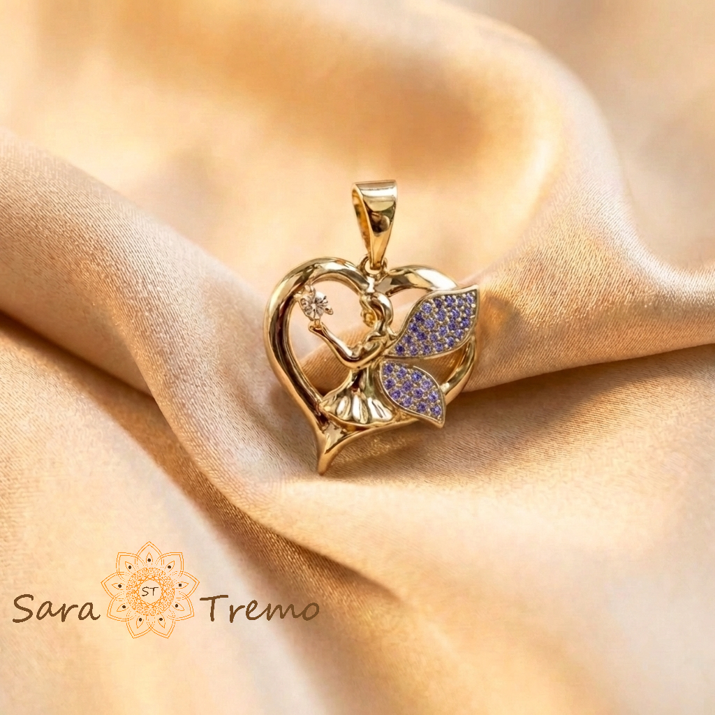 Pandantivul Inima Ingerului este o bijuterie cu simbolistica profunda si design delicat. Forma de inima incadreaza silueta unui inger, simbol al protectiei, puritatii si iubirii neconditionate. Detaliul floral lateral adauga un accent feminin si rafinat, transformand aceasta piesa intr-un pandantiv cu mesaj emotional puternic.