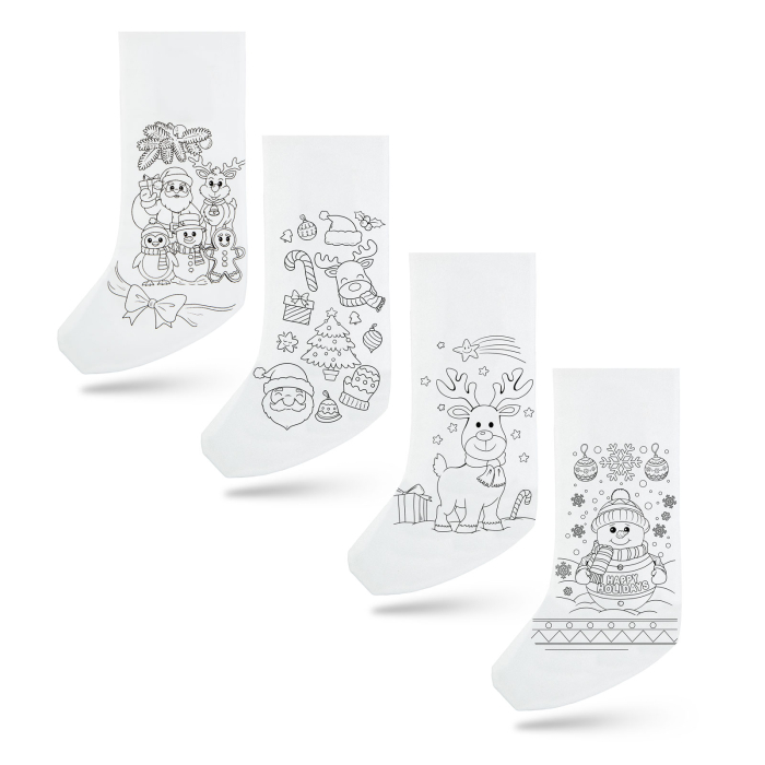 Colorați-vă propria șosetă de Moș Nicolae cu setul de markere colorate inclus! Două în unu: șosetă de Moș Nicolae și activitate creativă pentru copii. La colorare, introduceți un carton mai gros între cele două straturi de material pentru a preveni pătrunderea culorii pe spate.