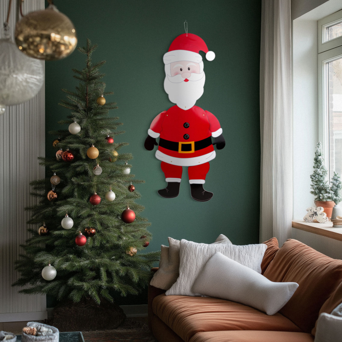 Decorează-ți casa cu această hârtie mare Moș Crăciun! Garantat pentru a vă lumina decorul de Crăciun, membrele și capul acestuia pot fi mutate și ajustate după bunul plac. Perfect pentru a stimula spiritul Crăciunului și o surpriză plăcută pentru oaspeții care sosesc în perioada sărbătorilor.