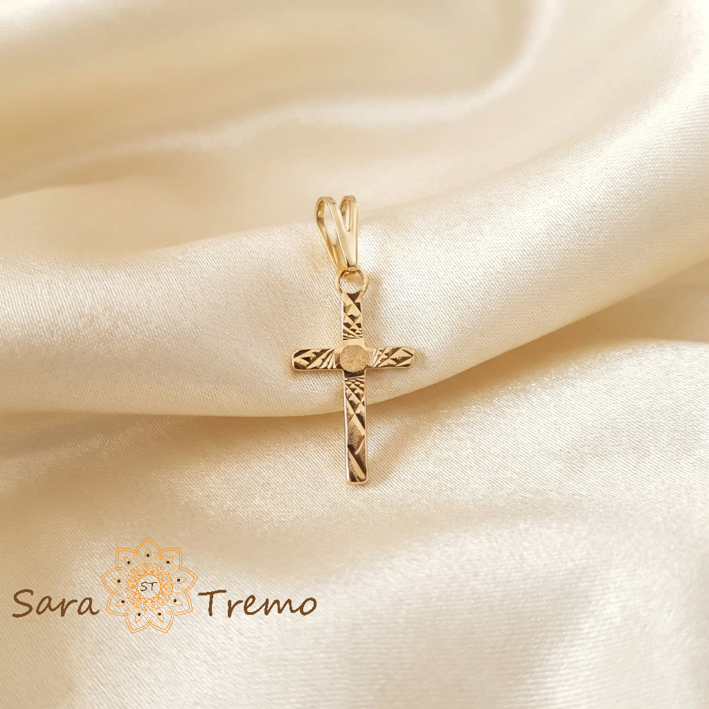 Această cruce fină, cu o dimensiune de 2 cm, este o adevărată operă de artă spirituală. În centrul crucii este gravat un soare, simbol al luminii divine, care emană raze către cele patru brațe, reprezentând călăuzirea și protecția lui Dumnezeu în toate direcțiile vieții. Acest design delicat și plin de semnificație face din cruce un accesoriu special, perfect pentru cei care își exprimă cu credință dragostea față de Dumnezeu.