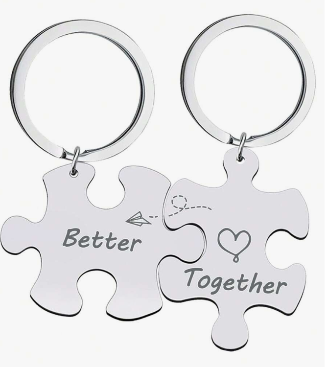 Celebrează dragostea și legătura unică dintre voi cu acest set de brelocuri pentru cuplu tip puzzle, inscripționate cu mesajul „Better Together”. Fiecare piesă de puzzle reprezintă o jumătate a unui întreg, simbolizând că împreună sunteți compleți. Este un cadou plin de semnificație, perfect pentru cuplurile care vor să-și exprime iubirea într-un mod subtil și creativ.